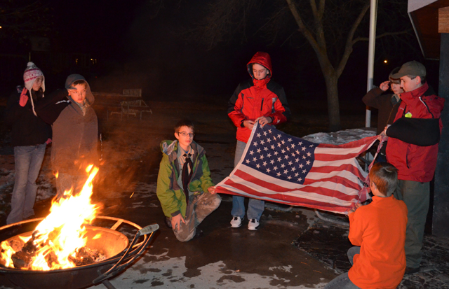 Troop 3785 were honored to retire 12 US Flags. This is a time of respect
