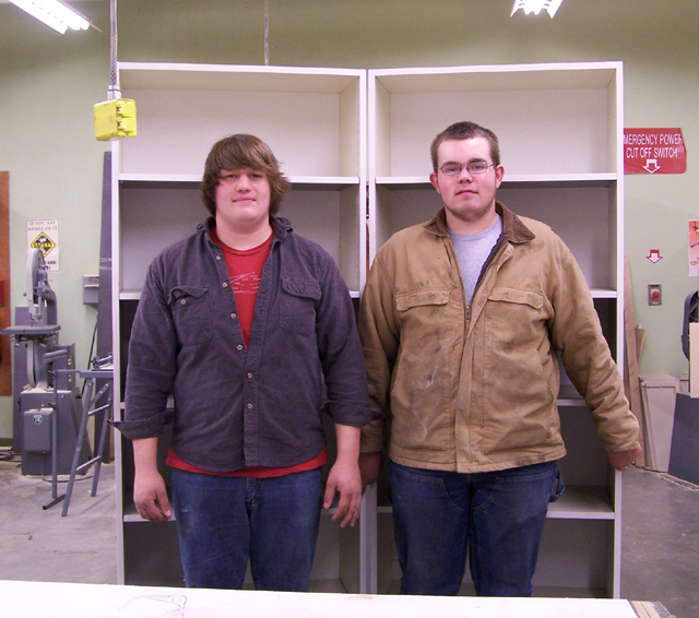 front of the cabinets they made for the computer room at Prairie Jr. High