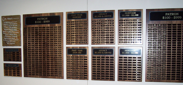 The new donor board for Mary’s Hospital Foundation is now displayed on the wall going towards the chapel. This display board was a long time coming; many decisions had to be made on cost, location, type of board, etc. but those decisions were finally made and the board is complete. It is a tribute to the many people who have donated to the foundation over the years. “I want to thank everyone whose name is on that board; St. Mary’s is so lucky to have this many people who care about our facility,” said Cheri Holthaus, Foundation Coordinator. “I also want to thank the foundation board for the many hours they spent discussing the board and taking the time to make sure we honored our donors in the proper way.” The current foundation donor data base system only goes back to 1995, if you donated prior to 1995 and would like your name on the board please contact Holthaus at 962-2327.