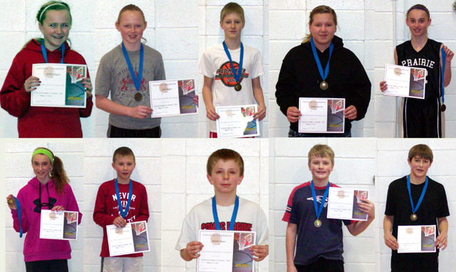 The annual Knights of Columbus Free Throw Hoop Shoot was finished on January 19. There were 111 boys and girls from the Prairie School District who participated. Their ages were from 10 to 14 years old. The winners of the Cottonwood Council 1389 competed in a district shoot at Prairie Elementary School on Saturday, January 19. Each champion received a medallion and certificate. Britney Bianchi was the 14-year old girls champion and Todd Ott was the winner of the 14-year old boys division. In the 13 year olds bracket Leah Higgins was the girls champion and Tyson Schlader was the boys champion. The 12-year old division was won by Spencer Schumacher for the boys and Kori Pentzer for the girls. The 11-year old champion was Jordyn Higgins for the girls and Samuel Mager for the boys. In the youngest division, the 10-year old girls champion was Paige Pentzer and the boys champion was Damian Forsmann. This year’s event had many good shooters and their scores will be compared to the other competitors in the state. If they win the state competition their scores will go on to the international competition in New Haven, CT. Thanks go out to Prairie School District and fellow Knights for making this event possible.