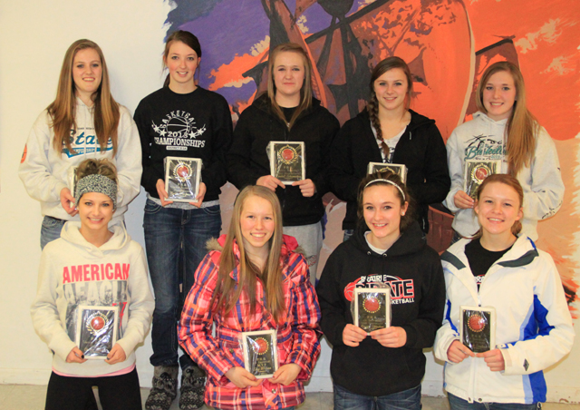 Monday, Feb. 25. Back from left are Tanna Schlader, varsity Most Valuable