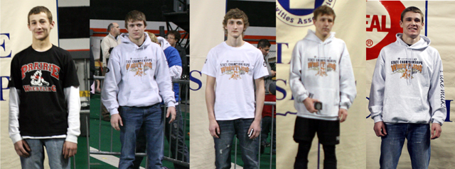 Shown are Prairie’s five medalists at the State Wrestling
