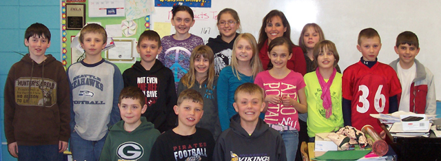 Megan Wilson poses with the Prairie 5th grade class