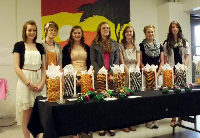 The menu consisted of Mango Chicken over Rice, Sugared Walnut, Cranberry and Spinach Salad, Dinner Roll, and Strawberry Shortcake. Serving the ladies were Seth Chaffee, Tanner Ross, Jared Higgins, Rhett Schlader, Weston Crenshaw, and Justin Schumacher. Kim Schumacher was honored with the title of “Mother of the Year,” when her daughter, Kendall’s, touching essay was chosen. (see below). Tyler Workman was chosen as “Girl of the Year,” while the following senior girls received, Miss Leadership – Kendall Schumacher, Miss Enthusiasm – Tanna Schlader, Miss Loyalty – Cheryl Gehring, Miss Responsibility – Ashley Cannon, Miss Sportsmanship – Brooke Schumacher, Miss Charity – Kelsey Tidwell, Miss Patience – Andrea Kaschmitter, Miss Optimism – Taylor Nuxoll, Miss Unity – Mackenzie Rieman, and Miss Scholar – Claire Whitley. The 2011-12 Prairie League officers were President – Kendall Schumacher, Vice President – Tanna Schlader, and Secretary – Taylor Heitman. The new officers for the 2013-14 school year are President – Jessica Kaschmitter, Vice President – Keely Schmidt, and Secretary – Beka Brunner. By Kendall Schumacher Words cannot describe the journey we have been through the past year. Where a lot of mothers who had girls in my situation would turn away and be ashamed of their daughters, you stood by my side and held my hand through everything. I want you to know how appreciative I am for all that you have been and done for me. You have always given me unconditional love, and I will forever be grateful for that. You have been there for me in the happiest of times as well as the saddest, in the easy times and through all the rough patches. You have been so forgiving of my faults, and when I do something that should be unforgivable, you forgive me. At the time I never understand the punishments of taking my car or cell phone away, but now I realize you were teaching me a lesson that paid off and made me a better person in the end. You are one of the reasons I want to become a teacher. Seeing how much of a difference you make in those young kids motivates me to make a change in the lives of children someday. I know it is going to be hard to say goodbye in the fall when I go off to college. If a problem arises, hearing your voice over the phone will not be the same as getting a big hug and told that everything will be okay. This is just one of many first we will have to get through together. I know that I am going to be okay when I leave because you have taught me the values I need to go out on my own and begin a new chapter in my life. Mom, I promise that no matter how annoying I can be, I will always consider myself your little girls who isn’t afraid to give you a hug and tell you that I love you in front of my friends. I promise I won’t ever take you for granted, as I know there are girls out there my age who are trying to get through the emotional life of a teenage girls without a mom. I love you mom, and thank you for everything you have given me.