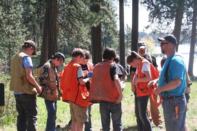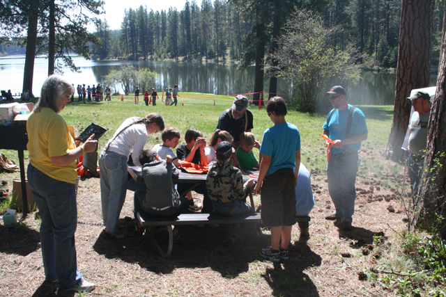 Teaching outdoors is natural for the Lewis Soil Conservation District (LSCD). Getting students in the outdoors and teaching them about conservation and natural resources is something they have been doing for 41 years. The LSCD served the community by organizing and hosting the 41st Annual Sixth Grade Field Day at Winchester Lake State Park on May 10. This youth event was enjoyed by approximately 115 6th grade students from Summit Academy, Highland, Nezperce, Prairie and Kamiah school districts. The students rotate throughout eight different educational stations every 20 minutes: Soils and Geology, instructed by Idaho Soil Conservation Commission, Eileen Rowan and volunteer Sarah Kuther, Forestry, taught by Idaho Department of Lands employees Clark Christiansen, Chris Gerhart, and Lowell Davis, Fire Control, instructed by Idaho Department of Lands employees Kit Behler, and Jed Pentzer, Air Quality/Campfire Etiquette taught by Johna Boulafentis, Nez Perce Tribe, Life of the Salmon, instructed by NRCS employees Kevin Traylor and Tina Barker, volunteers Tiffany Sonnen and Bethany Dreadfulwater, Taking Me Fishing taught by Idaho Fish and Game, Scott Cron, Shane Weignad and Jen Bruns, Nature Trail instructed by Idaho Fish and Game Jr. Ranger instructor Don Rudy, and the favorite part of the day riding was Canoeing with Elaine Sonnen, LSCD, Kevin Seitz, NRCS, Vern McMaster, LSCD, volunteers, Shaina Fowler, Richard Sonnen and Lyle Kuther helping students in and out of the canoes. The Winchester Quick Response crew was on site. Special guests for the day were Senator Dan Johnson and Representative Thyra Stevenson. They participated at the various stations throughout the day interacting with all the student and volunteers. Senator Johnson enjoyed taking a canoe ride. The Lewis County Fair Royalty Queen Bethany Dreadfulwater, Princesses Sarah Kuther and Shaina Fowler volunteered for the day helping out where needed at various stations. Appreciation for the instructors, guests and volunteers for their time and knowledge, Karol Holthaus, LSCD, prepared lunch for them. The weather was perfect for educational experience for everyone.