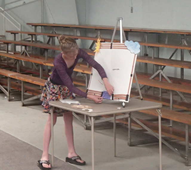Livestock 4-H Club giving her demonstration on “Getting an Area Ready for