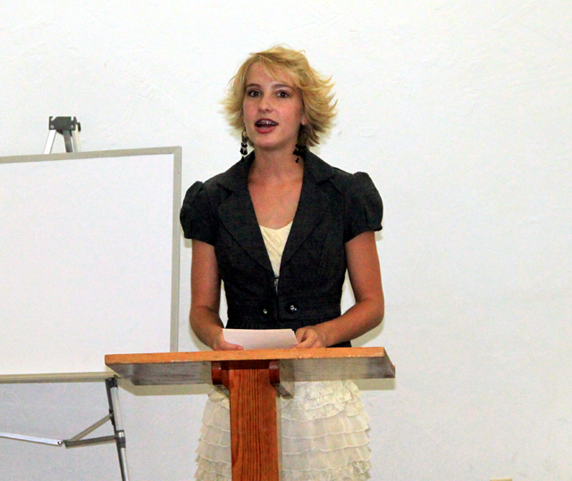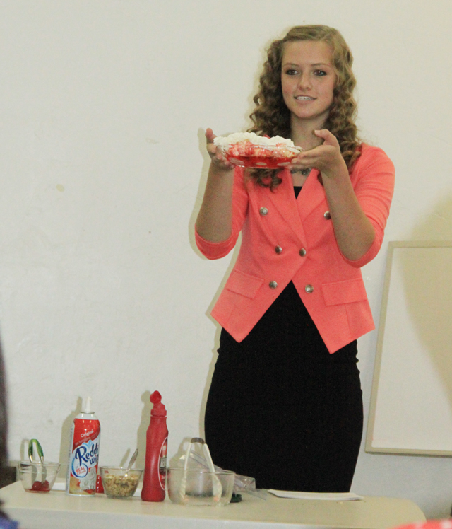 The 5 photos above show the 2014 royalty candidates giveing their speeches at the Royalty Luncheon on July 29. From top down they are Brandi Gehring, Holli Uhlorn, Maria Munger, Emily McHugh and Kelly Turney. |