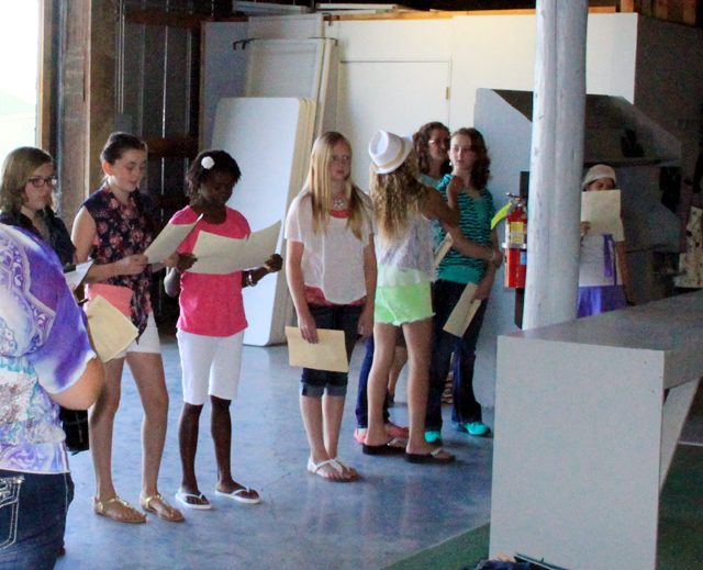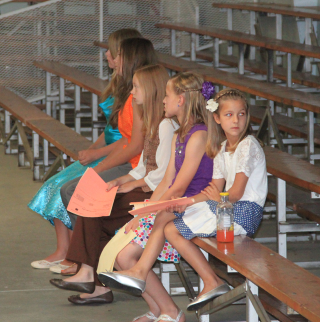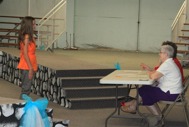 Young ladies waiting their turn in front of the judges Monday during the sewing projects judging.