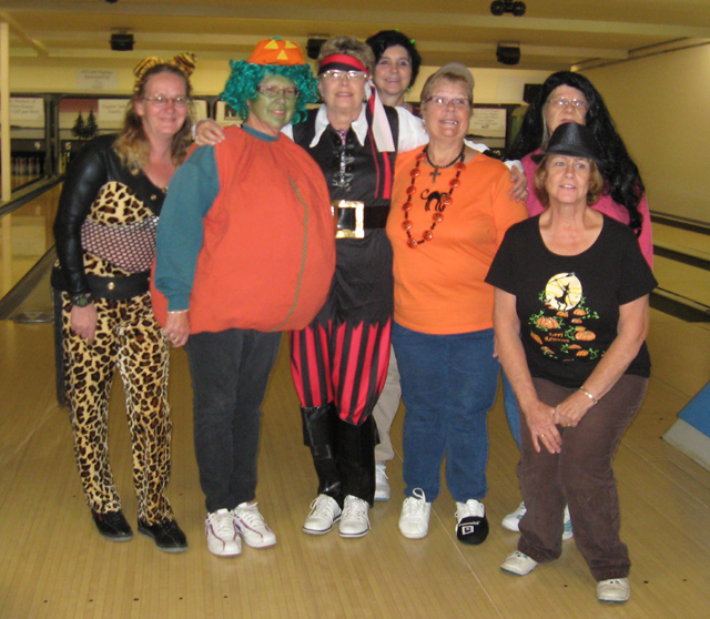 as the ladies dressed up for Halloween. From left are Chris Kaschmitter,