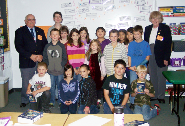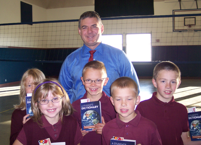grade dictionaries to the local elementary schools Shown above are students