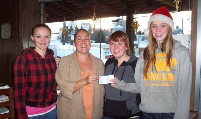 Senior Centers; Laina, Bailie, & Lauren with Zara Hasselstrom donating