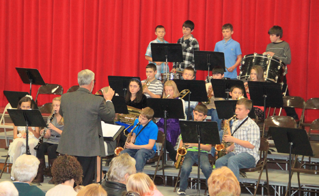 graders, 5th grade band, 6th grade band and Andrew Goeckner doing a trumpet