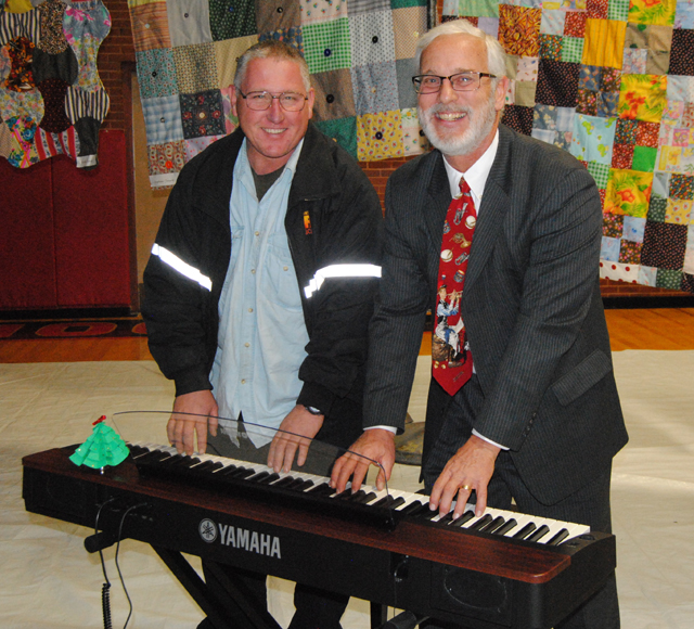 band director John Eynon with a digital keyboard donated by Ride Idaho.