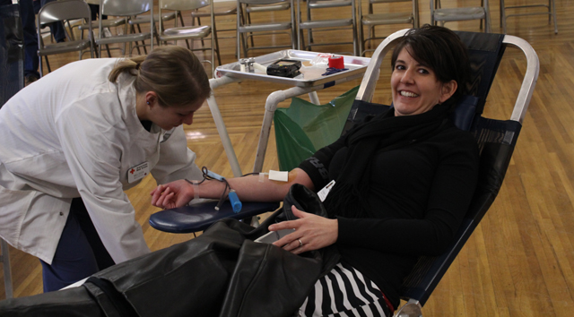 her busy day to donate blood. Photo provided by Cheri Holthaus. See story