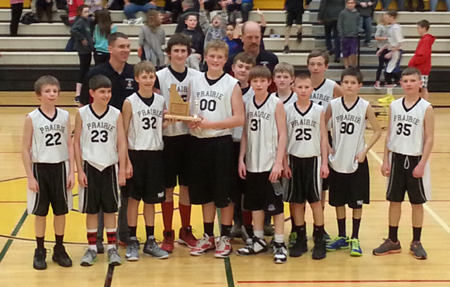 The Prairie boys team placed third at the Hallissey Tournament in Boise Feb. 14-16. Photo by Kim Schumacher. |