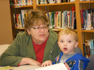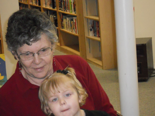 Teegan Vilensky (top photo) and Madeline Wassmuth (lower photo) brought their grandmothers, Judy Snyder and Donna Wassmuth, to the Library’s Story Time. Photos by Laurine Nightingale. |