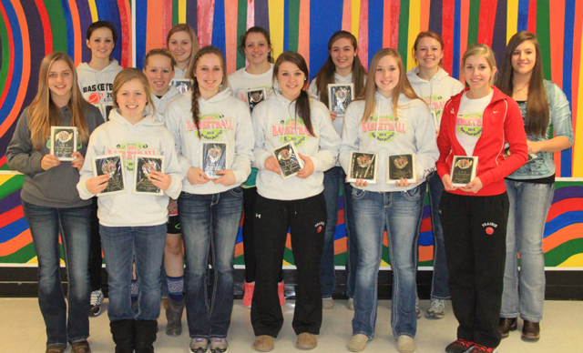 Prairie Girls Basketball awards were given out last Tuesday, March 4. Plaque winners are shown for both the JV and varsity teams. From left are Kylie Tidwell, JV Pirate Award; Kyndahl Ulmer, varsity co-captain and co-most valuable; Nicole Wemhoff, varsity co-captain and Pirate award; Sky Wilson, varsity co-captain; Kayla Schumacher, varsity co-most valuable; Hailey Danly, varsity hustle award; Shayla VonBargen, JV most valuable; Tasha Gimmeson, JV most inspirational; Krystin Uhlenkott, varsity Defensive award; Keely Schmidt, varsity co-captain and most inspirational; Sarah Seubert, JV co-most improved; Chaye Uptmor, JV hustle award; and Selena Davila, JV co-most improved. District 2 All-Star games The District 2 all-star basketball games were held Wednesday, March 12 at Lewiston High School’s Booth Hall. The girls game started at 6 p.m. with the boys team following. Making the girls south team roster from Prairie are Kyndahl Ulmer, Nicole Wemhoff and Leah Holthaus. Lori Mader is also one of the coaches. Summit’s Rachael Frei also made the squad. Making the boys south team roster from Prairie are Jared Higgins and Tyler Hankerson while Michael Waters and Matthew Schwartz made the roster from Summit Academy. Summit’s Ron Frei is one of the coaches for the south boys team. Jungert granddaughter on winning team Kelsey Yenney, daughter of Shelley (Jungert) Yenney and granddaughter of Guy and Mary Kay Jungert, is a member of the Columbia Basin College Hawks women’s team that won the NWAACC championship Tuesday, March 4 at Kennewick, Wash. They will advance to the national tourney. SCHEDULE FOR 2013-14Prairie Softball 2014 March 15—Kellogg (2) @ Lewiston Airport #2, 12:00 18—vs. Highland @Culdesac, 4:30 21—McCall, here (2) 4:00 22—Asotin Tournament: Kendrick, 1:15; Asotin, 3:30 25—Troy, here, 5:00 11 & 12—Glenn’s Ferry Tournament: Friday: North Freemont, 2:00; Soda Springs, 5:15; Saturday: Malad, 8:45; West Side, 12:15 15—Genesee (@Lewiston) (away game), 5:00 22—Highland, here, 4:30 24—Troy, there, 5:00 29—Genesee, here, 5:00 5—Colton, there, 5:00 8 & 9—Districts @Lewiston, TBA 16 & 17—State @Caldwell, TBA |