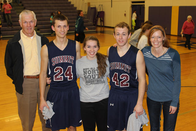 From left are Summit boys coach Ron Frei, David Waters, Rachael Frei, Matthew Schwartz and assistant boys coach Kim Frei at the All-Star games March 12. Photo provided by Summit Academy. |