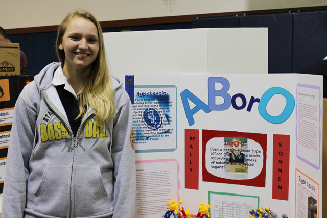 Ally Hale is shown with her project on blood sugar that was judged as the top overall project at Summit Academy’s Science Fair. Photo by Gina Lustig. |