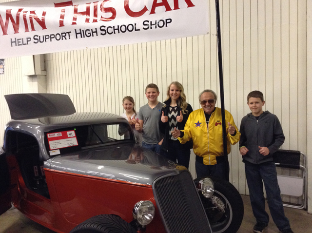 Summit Academy’s 33 Ford Coupe replica won first place in the Pharoah’s Car Club Street Rodder Choice High School Challenge and students were awarded $500 and a commemorative plaque. Twenty one high schools competed in the Portland competition and only two schools received awards. The high school students built the car during their shop class from a Factory Five Kit under the direction of Eric Wassmuth and Bo Rose last school year and are now marketing the car through a raffle until next fall. A volunteer group of parents and students have been entering the project in car shows in nearby cities but the show in Portland was the largest show attended yet. Two pin stripers at the show, after hearing about the loss of Summit senior Justin Dempsey, volunteered to paint a dedication to Justin on the inside of the trunk lid. They added a list of his classmates and the key adults who helped on the project. Another highlight at the show was a photo opportunity and a chance to visit with George Barris, the maker of several famous TV and movie cars including the Batmobile, the General Lee, the Green Hornet, and Kitt, from the Night Rider series. The Academy is selling raffle tickets for $10 each and the winner of the car will be drawn and announced at the Summit Academy Mystery Night this fall.summithotrod.org or call the school for tickets. 962-5650