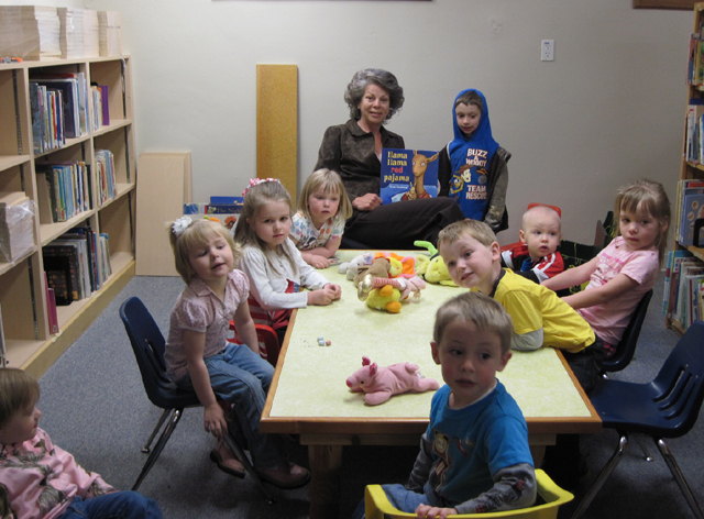 Story Time at Prairie Community Library with “Miss Pollyanna,” who makes