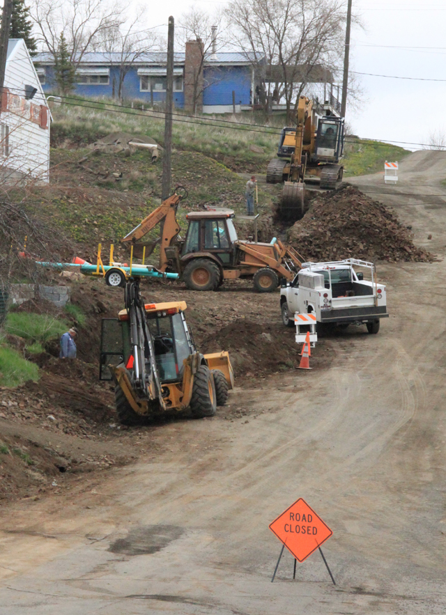 a collapsed sewer line along Front Street last week. Click on the photo