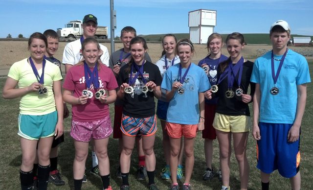 Spencer won the 3200 in 10:25.47, the 1600 in 4:55.30 and the 800 in 2:08.94. Arnzen won the 200 in 23.98, the 400 in 52.95 and was second in the 100 in 11.78. Uhlenkott won the long jump at 1511. She was also third in the 200 in 27.88. McWilliams won the 100 hurdles in 16.87 and was second in the 300 hurdles in 51.29. Gehring won the high jump at 46 edging out teammate Shayla VonBargen, who also cleared 46 on fewer misses. She was also 4th in the 100 hurdles in 18.59 and 6th in the 300 hurdles in 59.13. The 4x100 team of Keely Schmidt, VonBargen, McWilliams and Uhlenkott won in 53.38. Other boys results saw Bryson Higgins take 6th in the 200 in 26.06. He was 13th in the 100 prelims in 12.78 and 7th in the long jump at 165½. Drew Cochran was 3rd in the 1600 in 5:18.43, 4th in the 3200 in 11:31.64 and 13th in the shot put at 334 Ricardo Dominguez was 6th in the 800 in 2:29.69, 7th in the 1600 in 5:57.38 and 6th in the 3200 in 12:24.4. Dally Ratcliff was third in the 300 hurdles in 53.22 and 15th in the triple jump at 307. Brandon Higgins was 13th in the long jump at 135 and 14th in the triple jump at 309. Dakota Wilson was 4th in the shot put at 407 and 9th in the discus at 990. Westin Crenshaw was 7th in the shot at 372½ and 6th in the discus at 1130. A.J. Everson was 16th in the shot at 319¼ and 20th in the discus at 814. Ryan Glimp was 18th in the discus at 827 and 17th in the triple jump at 2911. The 4x100 relay team of Wilson, Cochran, Crenshaw and Everson was 6th in 57.82. The 4x200 team of Wilson, Glimp, Lucas Wemhoff and Brandon Higgins was 5th in 1:52.85. The 4x400 team of Glimp, Brandon Higgins, Ratcliff and Wemhoff was 5th in 4:10.45. As a team the boys place 3rd out of 9 schools with 111 points. For the girls, Schmidt was 7th in the 200 in 29.32. Heidi Holubetz was 2nd in the shot put at 3110 and 4th in the discus at 9110. Beka Bruner was 6th in the 3200 in 15:33.0. Nicole Poxleitner was 7th in the 400 in 1:18.65 and 15th in the 100 in 15.50. Bailie Gehring was 17th in the 100 in 16.15, 18th in the discus at 566 and 20th in the shot at 199¾. Beth Dinning was 10th in the shot at 255 and 11th in the discus at 741. Sydney Glimp was 12th in the discus at 688 and 13th in the shot at 239. The 4x400 team of Schmidt, VonBargen, McWilliams and Uhlenkott placed 2nd in 4:24.62. The 4x200 team of Schmidt, Brandi Gehring, Glimp and VonBargen was 4th in 1:59.17. As a team the girls also placed 3rd out of 10 teams, with 103 points, just 4 points out of first.