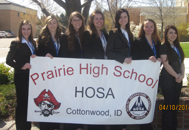 Prairie High School HOSA (Health Occupation Student Association) members competed at the State Leadership Conference held in Boise April 10-12. Daun Hoene, Katherine Nida, Rebekah Bruner and Lauren Alfrey of Prairie High School and Kelsie Seitz, Sydney Kuther, and Tianna Leitch of Nezperce High School all competed this year. Bruner placed third in Nutrition Knowledge testing. Alfrey place second in Veterinary Science and Leitch placed third om Prepared Speaking. All three girls qualified to compete at the National HOSA Conference in Orlando in June. Prairie HOSA also won the Penny Wars at the State Conference and came home with a trophy. Leitch ran for state officer and was elected as vice-president for our region for the state of Idaho. Prairie HOSA would like to thank you for your support.