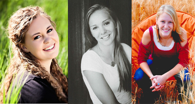 Farm Bureau scholarship winners from left are Adrianne Nuxoll, Sarah Chmelik and Katherine Hauger. |