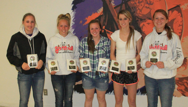 Softball awards were handed out last Wednesday. From left are Hailey Danly, offensive player of the year; Sky Wilson, co-captain and best all-round player; Jessica Kaschmitter, co-captain and Most Inspirational; Leah Holthaus, co-captain and defensive player of the year and Sarah Seubert, most improved. Ulmer is idahosports.com 1-A girls student-athlete of the year Idahosports.com instituted a student-athlete of the year award this year, 1 each for a boy and girl in each classification. Kyndahl Ulmer of Prairie was named as the 1A girls student-athlete of the year.