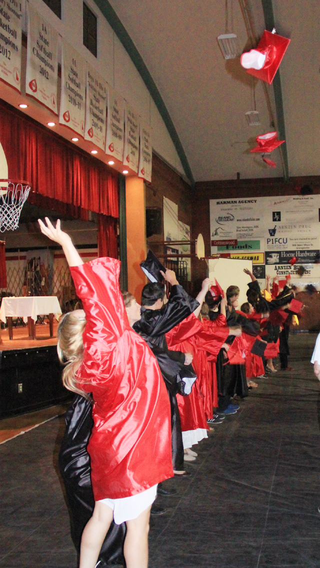 The Prairie High School class of 2014 has been awarded well over $300,000 in scholarships with a huge chunk of that amount being the value of a West Point education awarded to Drew Cochran. Cochran received his formal appointment to West Point from Lt. Colonel Albert J. Gomez at the graduation ceremony Friday, May 30. It is valued at $206,000. Cochran also was awarded a PHS Drug Free Scholarship worth $150. Dylon Bruegeman - LCSC Provost, $1,000. Rebekah Bruner - Centre College (Kentucky) Faculty Award, $21,500; Centre College Legacy Award (her father Teel is an alum), $2,000; IHSAA Scholastic Star, $1.000; Daughters of the American Revolution award, $25; Idaho School Board Association, $500; Cliff Holthaus Memorial, $200; Sr. MaryClare Kelly and Sr. Stephanie Wardle Memorial, $500; St. Mary’s Employee Scholarship, $500; Drug Free scholarship, $150; Lion’s Club Citizenship Award, $150; Excellence in Recycling Award from Idaho County Recycling, $500. Clark Bruno – LCSC Presidential, $1,500; LCSC High School Leadership, $500; St. Mary’s Youth Ministries, $250; St. Mary’s Prairie Faith Formation, $1,250. Westin Crenshaw – LCSC Counselor Leadership Scholarship, $250; LCSC Provost, $100; Lion’s Club Citizenship Award, $150. Casey Danly – U if I Academic Achievement Level G, $3,000; Alumni Association Scholarship; Henry P. Adams Scholarship; Jacob Riener Memorial, $300; Burt Lute Memorial Scholarship, $200. Kayla Duclos - U if I Academic Achievement Level G, $3,000; Idaho Opportunity. Apolonio Enriquez – LCSC Provost, $1,000. Andrew Gehring – Logan Lustig Memorial, $500; LCSC Logan Lustig Annual Scholarship, $500. Brandi Gehring – Cliff Holthaus Memorial, $200. Joseph Halligan – Northwest Nazarene University Wesley Academic Scholarship, $8,000. Tyler Hankerson - LCSC Provost, $1,000. Laurel Henry – College of Idaho Dean Scholarship, $10,000; Kathryn Albertson Scholarship, $2,000; Idaho County Light & Power, $750. Jared Higgins – U if I Academic Achievement Level G, $3,000; Alumni Association Scholarship; L. Dean & Gay Welch Scholarship; All Star Classic Games, $60. Daun Hoene – LCSC Presidential, $1,500; LCSC Counselor Leadership, $250. Leah Holthaus – Blue Mountain Community College Athletic Scholarship Jessica Kaschmitter – Camas Professional Counseling, $200; Drug Free Scholarship, $150. Jacey Langston – LCSC Provost, $1,000; Chris Jensen/Ron Wemhoff Memorial, $1,000; Camas Professional Counseling, $200. Katherine Nida – LCSC Provost, $1,000; McGregor Families Scholarship, $1,000. Jacob Rowland – Idaho State Trapshooting Hall of Fame, $500. Keely Schmidt – LCSC Provost, $1,000. Kyndahl Ulmer – LCSC Athletic Scholarship, $8,000; LCSC Presidential, $1,500; LCSC Leadership, $500; Kamiah Jeep Club, $250; Grandpa Bill Smith Memorial, $50; All Star Classic Games, $60. Nicole Wemhoff – University of Great Falls Presidential Scholarship, $9,500; Courage Award, $2,000; Voice of Democracy, $200; Travis Uhlenkott Memorial, $500; Cliff Holthaus Memorial, $200; Maurice Shinn Sportsmanship Scholarship, $250; Catholic Parish Scholarship, $1,000; John Kernan Memorial Scholarship, $340; All Star Classic Games, $60. Dakota Wilson - U if I Academic Achievement Level G, $3,000; Idaho School Board Association Scholarship, $750; Cliff Holthaus Memorial, $200. Sky Wilson – Treasure Valley Athletic Scholarship; High School Rodeo Scholarship, $100. Photos of Graduation