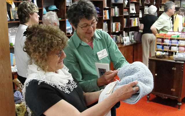 Oblates Linda Stubbers and Alyse Cadez explore the new Gift Shop located in the Welcome Center.