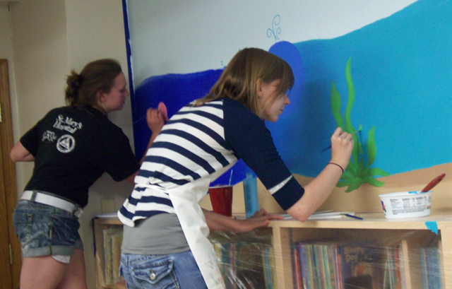 paint an undersea scene mural on one of the walls in the Library. The lower