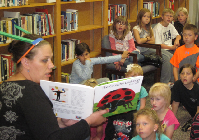 Reading Program at the Library. In the top photo guest reader Missy shares