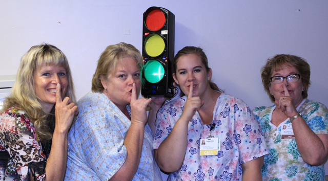 Sue McAfee and shown ‘shushing’ the photographer in order to keep the stoplight