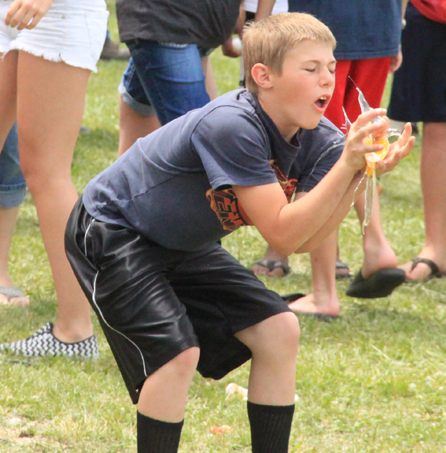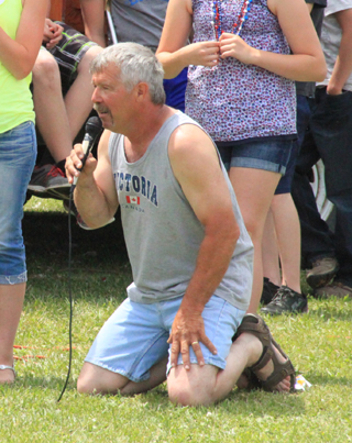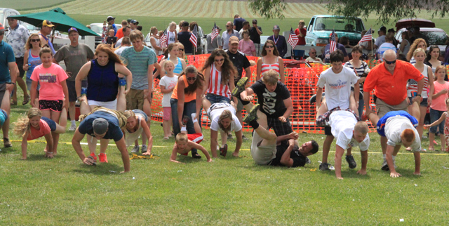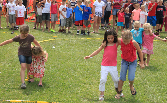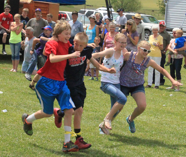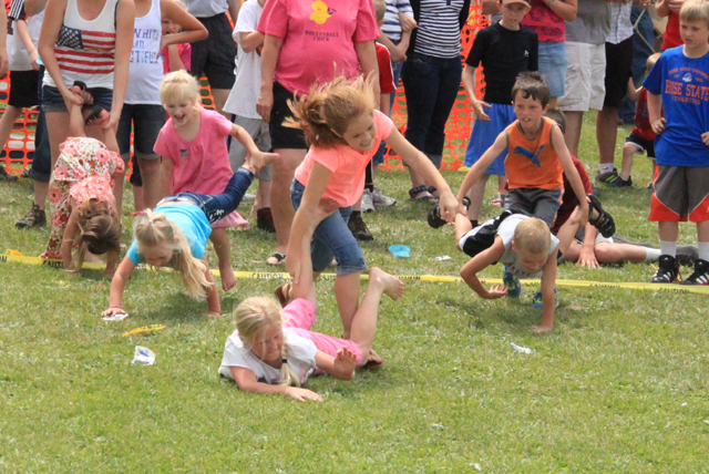 one of the top finishers in this wheelbarrow race and both got up laughing