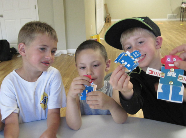 Youngsters with the miniature robots they made at