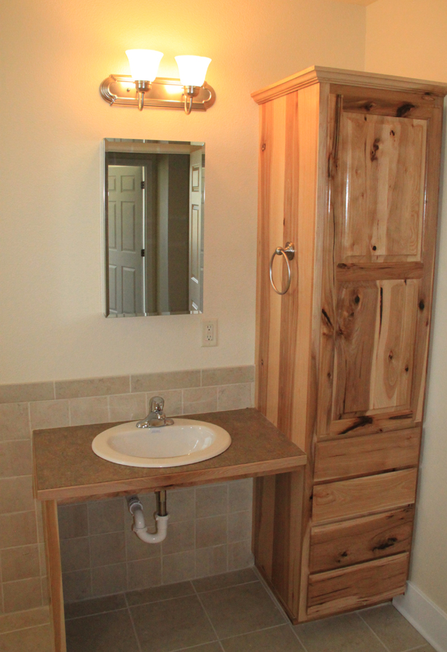 The bathroom sink and more Ron Wimer built cabinets. The medicine chest shown is mirrored both inside and out.