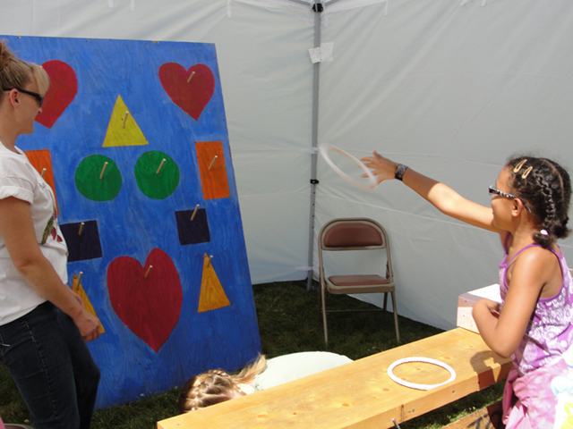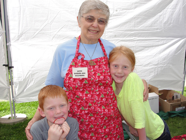 Sr. Barbara Ann with some youngsters in the children’s game area.