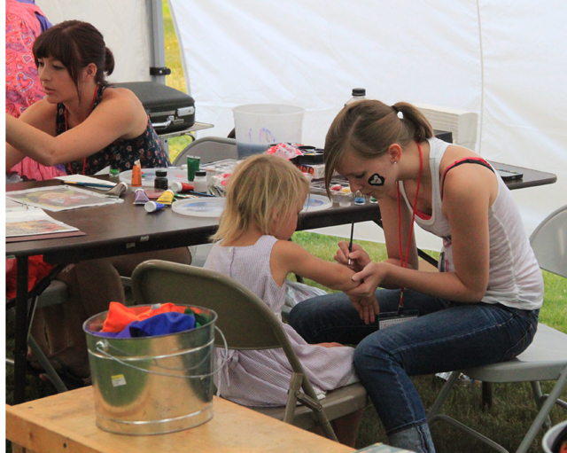 Andrea Kaschmitter paints a design on a young lady’s arm. She and Kenzie Rieman, left, were kept busy.