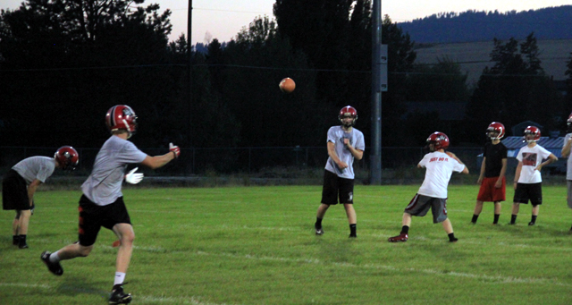 Prairie’s offense ran through a series of plays at Monday’s first official football practice of the season. Rhett Schlader, foreground, is about to catch a pass from Jake Bruner. PIRATES BOYS FOOTBALL SCHEDULE FOR 2014 SEPTEMBER 5-Genesee*, there 12-Salmon River, there 19-Council, there 26-C.V.*, Homecoming, here OCTOBER 3-Lapwai*, there 10-Troy*, here 17-Potlatch*, there 24-Kamiah*, here 31-State Playoff, higher seed host NOVEMBER 7-State Playoff, higher seed host 14-State Playoff, Kibbie Dome 21-State Championship, TBA *League Game PIRATES JR. HIGH BOYS FOOTBALL SCHEDULE FOR 2014 SEPTEMBER 11-Lewis County, there 18-Kamiah, here 25-Timberline, there 30-C.V., there OCTOBER 16-Lapwai, here PIRATES BOYS BASKETBALL SCHEDULE FOR 2014-15 *indicates league game DECEMBER 9-Moscow, there, 5:30 p.m. 10-JV vs Grangeville, here, 7:30 p.m. 12-Grangeville, there, Idaho County Shootout, V only, 7:30 p.m. 16-Troy, there* 18-Kamiah, here* 19-Genesee, there* 29-30-31-NIC Tourn. at Cd’A, TBA JANUARY 6-Lapwai, here* 9-C.V., there* 15-Potlatch, here*, 5 p.m. 20-Genesee, here* 23-Kamiah, there* 26-Asotin, here, quad, JV 4:30, V, 6:30 27-Grangeville, here 29-Troy, here* FEBRUARY 5-Lapwai, there* 7-C.V., here*, 1 p.m. 11-Moscow, there, 5:30 p.m. 14-Potlatch, there*, 1 p.m. 17, 18, 19, 23, 24 & 27-District at LCSC 26-State Play-In #1 at Wallace 28-State Play-In #2 at Cascade March 5-7-State at Caldwell Below is the tentative Academic Bowl Schedule for Prairie for the 2014-15 school year. High School 6:30-8:30 p.m. Sept. 29-at Nezperce Oct. 20-at Orofino Nov. 10-at C.V. Dec. 1-at Summit Jan. 5 or 12-at Grangeville February-Tournaments March 9-at Prairie April 13-at Timberline Junior High 6:15 to 7:45 p.m. Oct. 13-at Nezperce Nov. 17-at Grangeville March 17-at Grangeville April 21-at Nezperce |