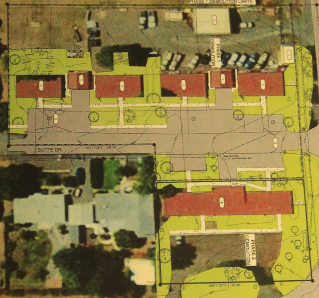 The current BLM campus. The buildings are the west side of Butte Dr. (the six brown buildings towards the top plus the two white buildings)will be demolished starting in March, 2015. There will be temporary offices placed east of the large main office building. Those will be used until the new building is finished, c. early 2016, then they will be demolished once they move to the new building and turned into a parking area.