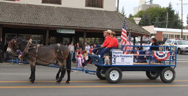 The 2014 Idaho County Fair Parade was a success; there were over 40 entries varying from royalty to miniature horses to 4-H groups. The Fair Board would like to thank everyone who entered the parade and also everyone who helped to make it such a success. Thanks to the Hang Out for allowing the parade to use their parking lot for the lineup, Collette Schaeffer and Sheri Daly for helping with the sign in, Pat Holthaus, Lynn Guyer and Ed Holthaus for helping with the line-up, Pat Holthaus for announcing, the Lion’s Club for the use of their sound system, Hoene Hardware for letting us hook up the sound system in front of their store, to Bud’s for loaning out two of their side by sides for the Fair Board to ride in and special thanks to the Coyote Mule Company for driving the Grand Marshal in their mule drawn wagon. The Fair Board would also like to thank the Prairie football team who cleaned up after the parade. The winners of the parade are as follows: Commercial: 1st-St. Mary’s Hospital; 2nd-Syringa Hospital; 3rd-Gortsema Motors Non-Profit: 1st-Color Guard and VFW; 2nd-Grand Marshals/Coyote Mule Company; 3rd-Prairie League Royalty: 1st-Idaho County Royalty; 2nd-Lewis County Royalty; 3rd-Past Idaho County Royalty Equestrian: 1st-Riggins Rodeo; 2nd-Central Idaho Rodeo Association; 3rd-Border Days Rodeo Best of Show: Idaho County Royalty