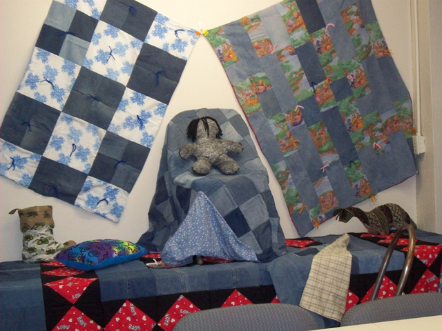 A display of quilts and other items made by offenders
