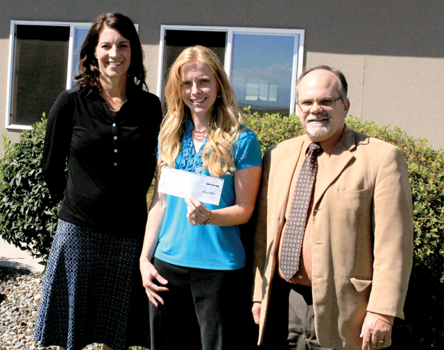 Amy Rose and Jim Hickel show off the check they received for Summit Academy