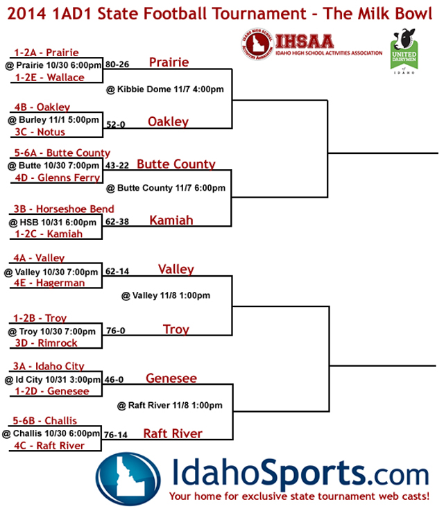 Pirates to play Oakley at 4 p.m. Nov. 7 at Kibbie Dome Below is the State 1AD1 Football bracket updated after last week's first round games.