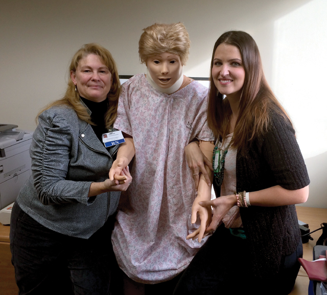 Kathy Phelps and Anna Wren OB Directors for CVHC and SMH show off the ‘simulation mom’