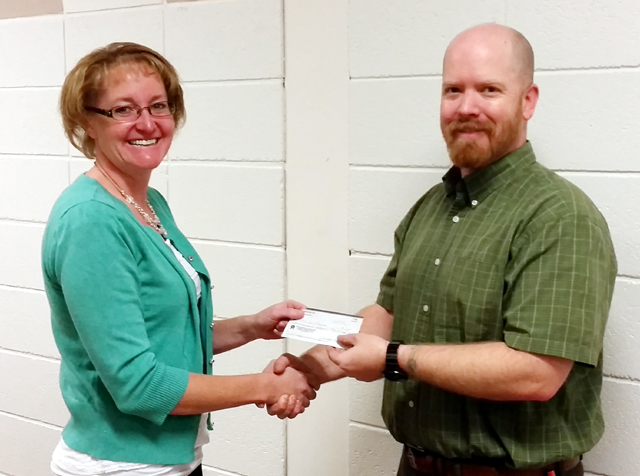 presented Mr. Shane Chapman, Prairie Schools new Art teacher with a $200
