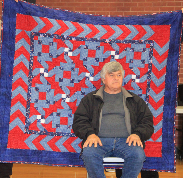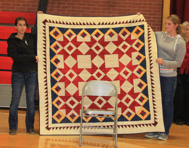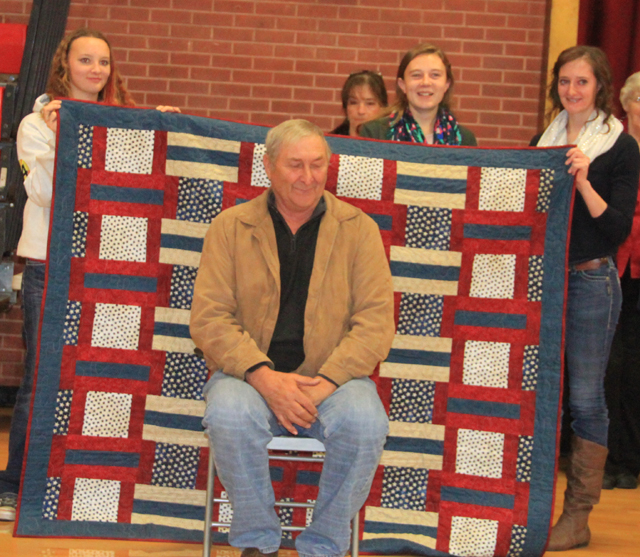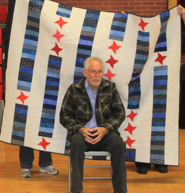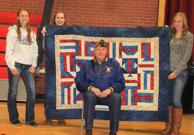 The Quilts of Valor were presented to local veterans at the Veterans Day Assembly at Prairie Jr./Sr. High School. The goal is to be able to present one to each veteran.