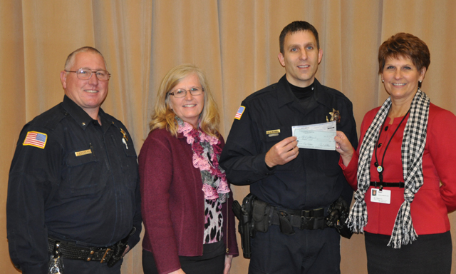 Forsmann, Officer Rambo and Cheri Holthaus of St. Mary’s Hospital. Photo